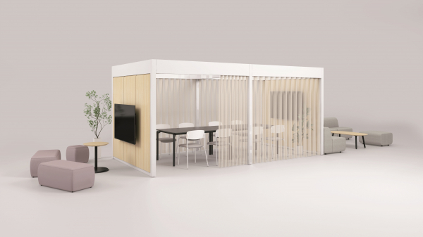 ベースフレームにオプションを組み合わせて、オープンなコミュニケーションスペースからエグゼクティブのためのソロブースまで、ニーズに合わせて空間を構築できます。