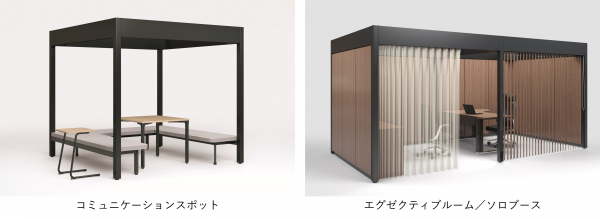 シリーズ名の「Work Piloti」は、開放感・多目的利用・通風と採光といった快適さを形作る要素を、地上部分が柱のみの建物を指す建築用語であるピロティのイメージに重ねています。オフィスの中でビジネスシーンや憩いの場など、人が行き交う自由なスペースとして活用いただくことを意図しています。