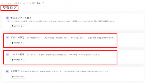 (管理者ページ > 監査ログ画面)