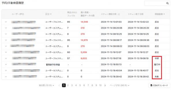 ■ 個人情報・機密データ検査が終了していなくても進行状況が把握できます。