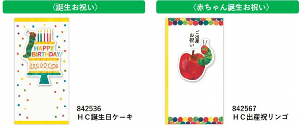 色紙をコラージュして制作された原作のカラフルで鮮やかなアートワークや、あおむしがひょっこり顔を出す可愛らしい仕草をデザインに取り入れ、豊かな色彩を生かした祝儀とグリーティングカードが誕生。