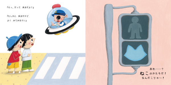 ユニークな青信号がたくさん登場するほか、「新しい信号機」のアイデアを考えられるしかけもついた、子どもたちの想像力を育む一冊です。