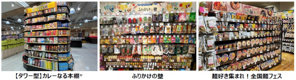 「全国麺フェス」コーナーには、日本全国の袋麺・カップ麺が大集合!北海道のご当地麺をはじめ、富山ブラック、仙台辛味噌ラーメン、熊本黒マー油とんこつラーメン、和歌山中華そば、喜多方ラーメンなど、そのほかにもズラリと並んだ約90種類のご当地麺から、お好みの商品をお探しください。