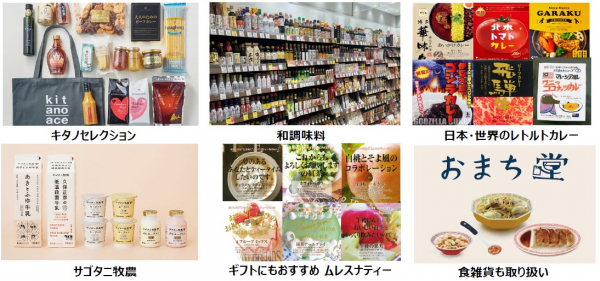 北野エースが国内外のメーカーとのタイアップによって開発・製造・販売をしているプライベートブランド「キタノセレクション」の商品も多数取り扱います。ドレッシングやジャム、菓子、ご飯のおともまで、多種多様な品揃えです。