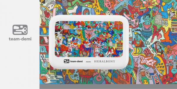 ヘラルボニーは「異彩を、放て。」をミッションに掲げ、国内外の主に知的障害のある作家とライセンス契約を結び、さまざまなビジネスを展開している企業です。ヘラルボニーと作家が作り出す先入観や常識のボーダーを超える心豊かな世界は、チームデミと通じ合うものがあります。