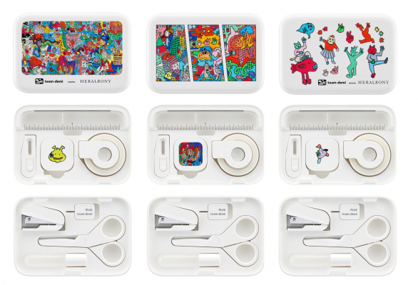 プラス株式会社(東京都港区 代表取締役社長 今泉忠久 以下プラス)は、福祉を起点に新たな文化の創出を目指す株式会社ヘラルボニー(岩手県盛岡市 代表取締役 Co-CEO 松田 崇弥、松田 文登 以下ヘラルボニー)の契約作家が描くアートをデザインしたステーショナリーセット「チームデミ<限定>ヘラルボニーコラボデザイン」を2024年11月25日に数量限定で発売します。メーカー希望小売価格(税込)は7,700円です。