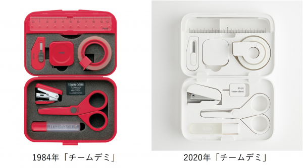 「チームデミ」は“持っているだけで楽しくなる”をコンセプトに1984年に誕生した手のひらサイズの文具セット。「切る・貼る・綴じる・測る」という文具の本質を追求し、累計650万個を販売したプラスの大ヒット商品です。