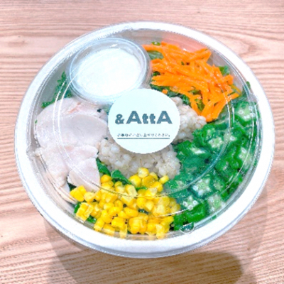 水溶性食物繊維を豊富に含むもち麦を使用し、野菜の王様といわれるケール、たんぱく質も同時にとれる蒸し鶏で構成され、塩こうじとヨーグルト、生姜を使ったさっぱりとしたドレッシングを使ったサラダです。