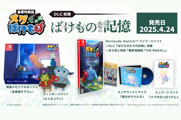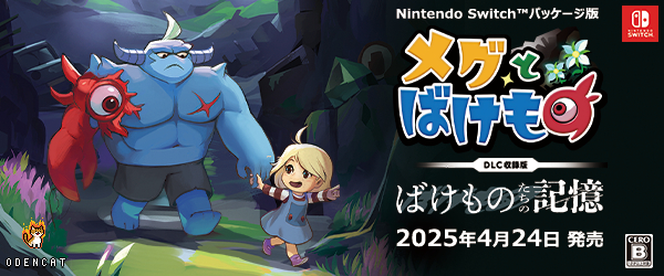 Odencat株式会社は本日、『メグとばけもの』Nintendo Switchパッケージ版が2025年4月24日に発売されることを発表します。また、店頭での予約受付が開始されたこと、さらに今回初公開となるDLC「ばけものたちの記憶」がパッケージ版に先行収録されることもあわせてお知らせします。