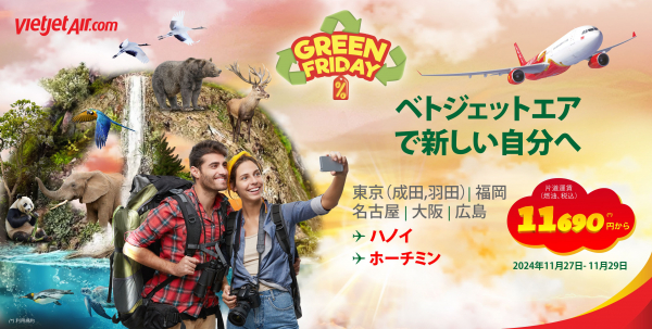 (東京, 2024年11月20日) - 年内最大級のショッピングイベントを祝し、ベトジェットは待望の「グリーンフライデー」プロモーションを実施します。このプロモーションでは約100万枚ものエコチケットを片道わずか11,690円(税・手数料込)から提供し、旅行者の皆様は環境に配慮した旅行をお楽しみ頂けます。