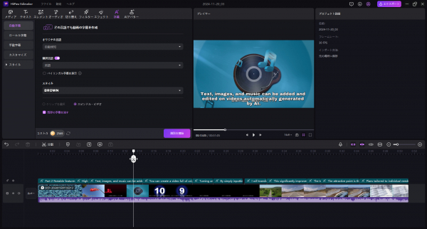 AIが音声データを解析して字幕を生成するため、動画内の音声と字幕が自動的に同期されます。