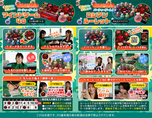 株式会社GREEN RUSH BY WEEDより、お酒の新ブランド「クリームクリーム」のハバネロフレーバーを使った飲みゲーム2種類を2024年11月25日(月)より発売いたします。