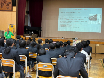 社会奉仕団体ライオンズクラブ国際協会330-A地区(東京・森亮介ガバナー)に所属する、江東南ライオンズクラブ主催・東京蒼天(あおぞら)ライオンズクラブサポートで2024年11月21日(木)に、江東区立大島中学校1年生87名の生徒を対象に、体育館で薬物乱用防止教室を開催しました。