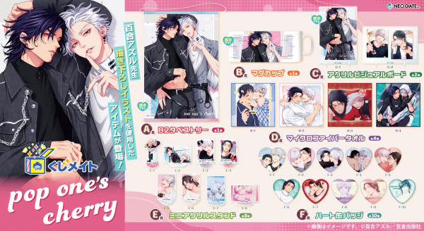 アニメイト通販の「くじメイト」に、大人気BLコミック『pop one's cherry』のオンラインくじが登場!