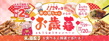 キャンペーン名:1129の日 米の娘餃子を食べると抽選で当たる!米の娘ちゃんからのお歳暮をもらおうキャンペーン