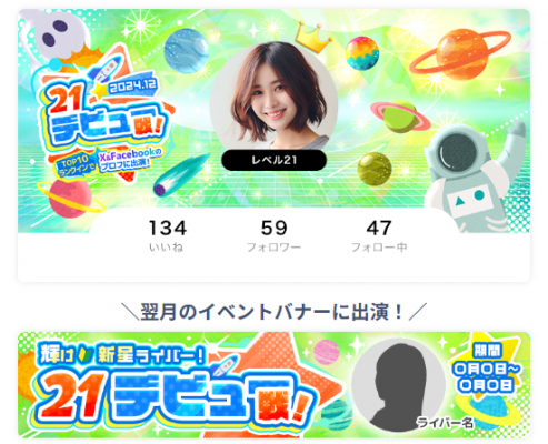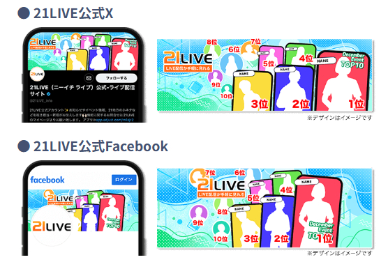 ランキング1~10位入賞で21LIVE公式X(旧Twitter)&Facebookのプロフィール画像に出演!