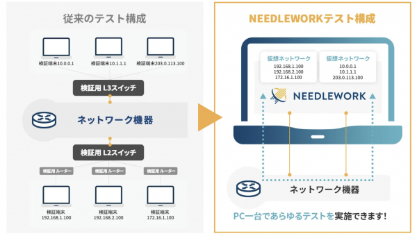 NEEDLEWORKを利用することにより、テストに必要な環境構築、手作業での人的ミスを排除することが可能です。また、自動化によりテストにかかる時間を大幅に削減することが可能です。
