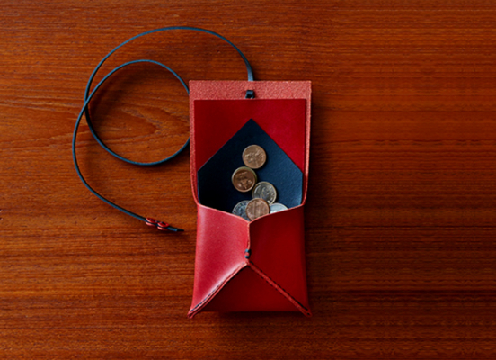 手縫いレザー縦巻きウォレット