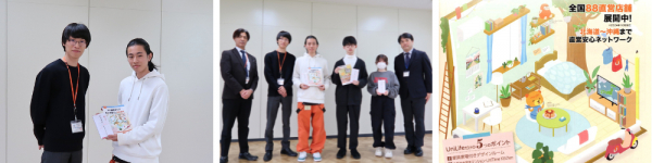 最優秀賞に選出された矢治さん(4年生)は、「自分の部屋に似たイメージでデザインしました。学生という立場から、自分の部屋の雰囲気を『本』の中に表現するというコンセプトで挑戦しました。このような評価をいただけて本当に嬉しいです。」と喜びを語っていました。また、優秀賞を受賞した菊地さん(4年生)は、「自分の理想の一人暮らしの部屋を、設計図のように表現しました。好きな色合いや木目調の素材感を取り入れたことが、評価されたポイントだと思います。」と振り返りました。