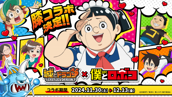 株式会社アソビズム(本社:東京都千代田区、代表取締役:大手智之)よりApp Store・Google Playにて好評配信中の『城とドラゴン』にて、アニメ『僕とロボコ』との初のコラボイベントが2024年11月30日(土)から開催中です。