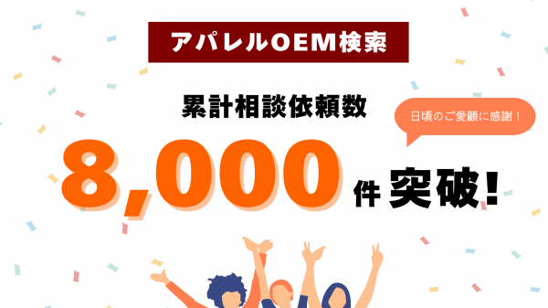 アパレルOEMのマッチングサイト「アパレルOEM検索」( https://apparel-oem.com/ )を運営する株式会社ノーマリズム(東京都目黒区)は、「アパレルOEM検索」におきまして、累計相談依頼数が8,000件を突破いたしましたことをお知らせいたします。