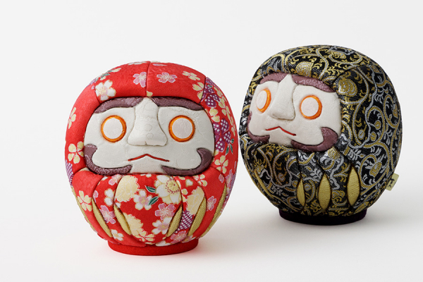 職人がこだわった西陣織を選定し、江戸木目込み技法を用いて作られただるま。丸い造形にしわを寄せず木目込みをするのは熟練のなせる技。一つ一つ丁寧に心を込めて仕上げています。