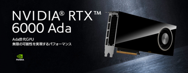 NVIDIA(R) RTX(TM) 6000 Adaは、メモリ容量が48GBと大容量で、高いグラフィックス処理性能や並列処理性能を備えているワークステーション向けのGPUです。
