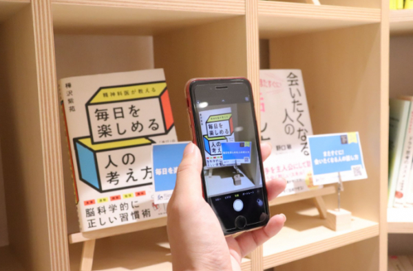 「ネットとリアル書店の融合」をテーマに実施している書店との連携企画では、各書籍のPOPに付けたQRコードをスマートフォンで読み取ることで、通常は有料の要約文を、どなたでも無料で「立ち読み」することができます。本の大筋を捉えてもらうことで、来店者の興味を高め、“いま出会うべき本”を選べる仕組みです。※QRコードの商標はデンソーウェーブの登録商標です。