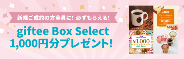 キャンペーン期間中に、「ドコモスマート保険ナビ」経由で「アクサダイレクトのバイク保険」の新規にご成約いただいたお客さまを対象に「giftee Box Select 1,000円分」をもれなくプレンゼントします。