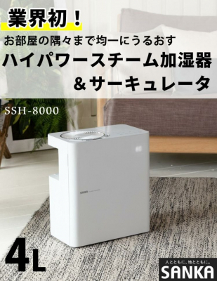 【SANKA サーキュレーター付きパワースチーム加湿器 SSH-8000WH】