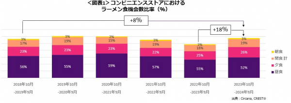 利用者、利用シーンのトレンドを把握、コンビニのラーメンは夕食の食機会数が増加