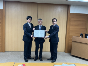 当センターは、熊本県御船町と立地協定を締結し、オープンする運びとなりました。12月2日に行われた調印式には、御船町の藤木正幸町長と当社専務執行役員の蛭間博信が出席し、「物流センター熊本(仮称)」の開設にあたり、当社と熊本県御船町の連携を一層強化していくことを再確認いたしました。