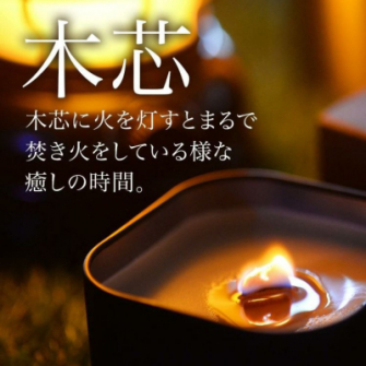 キャンプの定番「焚き火」をイメージした木芯キャンドル