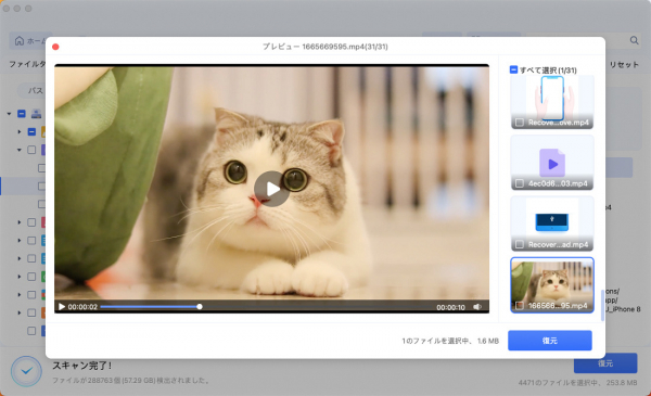 ● ファイルの種類やフォーマットを問わず、幅広いファイルを復元できる