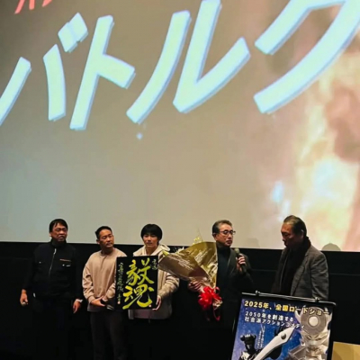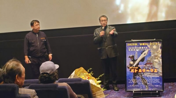 PAG事務局 パワーアクショングロウが製作する特撮ヒーロー映画界のレジェンド、藤岡弘、と堀田眞三が声優として出演する大東賢監督・主演の話題作、「~運送ドラゴン~パワード人間バトルクーリエ」試写会が12月6日イオンシネマ板橋で開催されました。