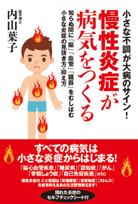 「小さな不調が大病のサイン!慢性炎症が病気をつくる 知らぬ間に「脳」「血管」「臓器」をむしばむ小さな炎症の見抜き方・抑え方は、医学博士、総合内科専門医、腎臓内科専門医である、葉子クリニック(所在地:福岡県北九州市)の内山 葉子院長が最新の欧米の医学知見をもとに自覚症状が少ない「慢性炎症」を見抜き、大病を未然に防ぐためのガイド本です。