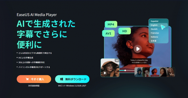 EaseUS Software Co., Ltd.は、2024年12月6日(金)に新製品「EaseUS AI Media Player」をリリースしました。このWindows向けの新しいメディアプレーヤーは、AIモデルを搭載したツールで、ビデオの音声を自動的に認識し、字幕を生成したり、30以上の言語に翻訳したりすることができます。EaseUS AI Media Playerの主な特徴は以下の通りです。ご覧ください。