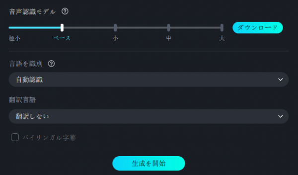 ステップ2. モデルをダウンロードしたら、必要に応じて翻訳するかどうかを選択し、「生成を開始」をクリックします。