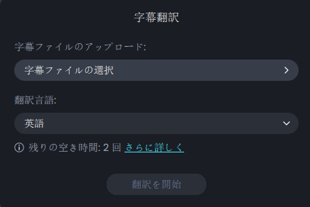 ステップ3. 字幕ファイルをアップロードし、希望の言語を設定して「翻訳を開始」ボタンをクリックします。