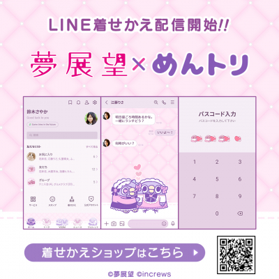 株式会社インクルーズ(東京都渋谷区、代表取締役社長 山﨑 健司)は、LINEヤフー株式会社が運営するコミュニケーションアプリ「LINE」内のショップにて、「夢展望×めんトリ」のLINEスタンプとLINE着せかえを2024年12月10日(火)に一斉に配信開始致しました。