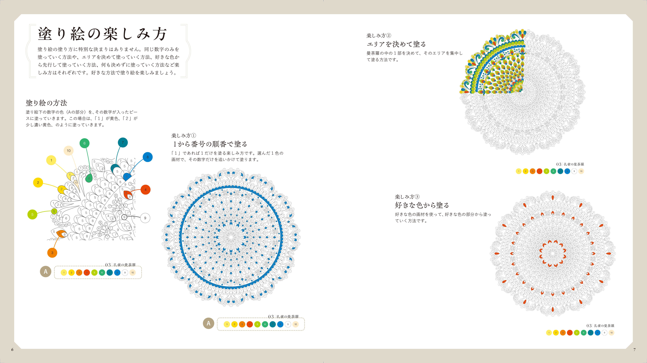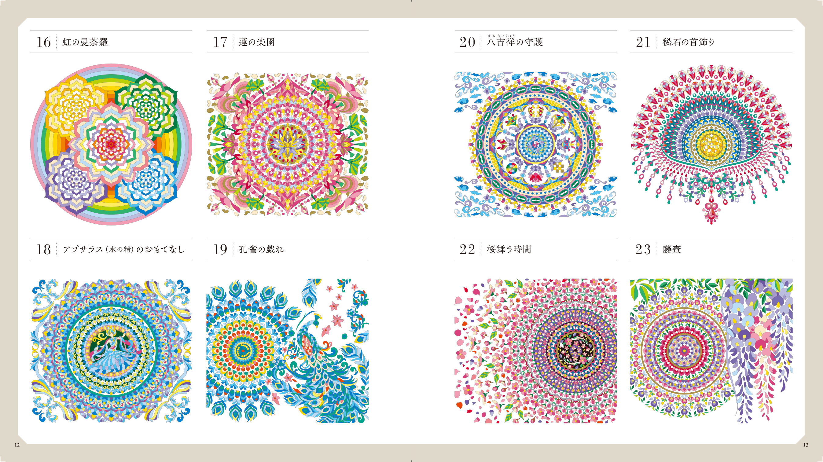 本書ではシンプルな曼荼羅から、森羅万象を表現する複雑な曼荼羅まで、初心者から上級者まで満足できる曼荼羅32点を掲載。