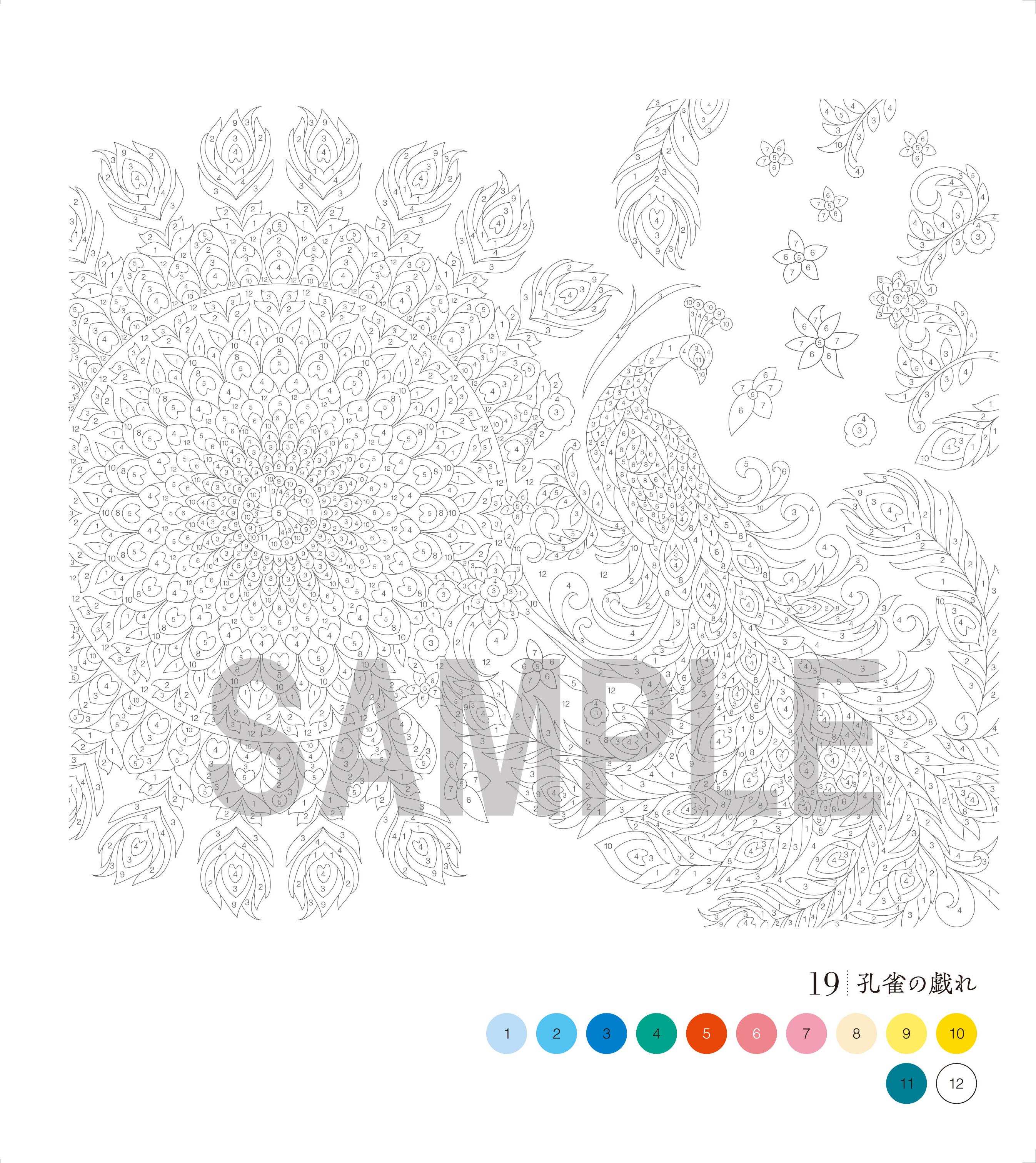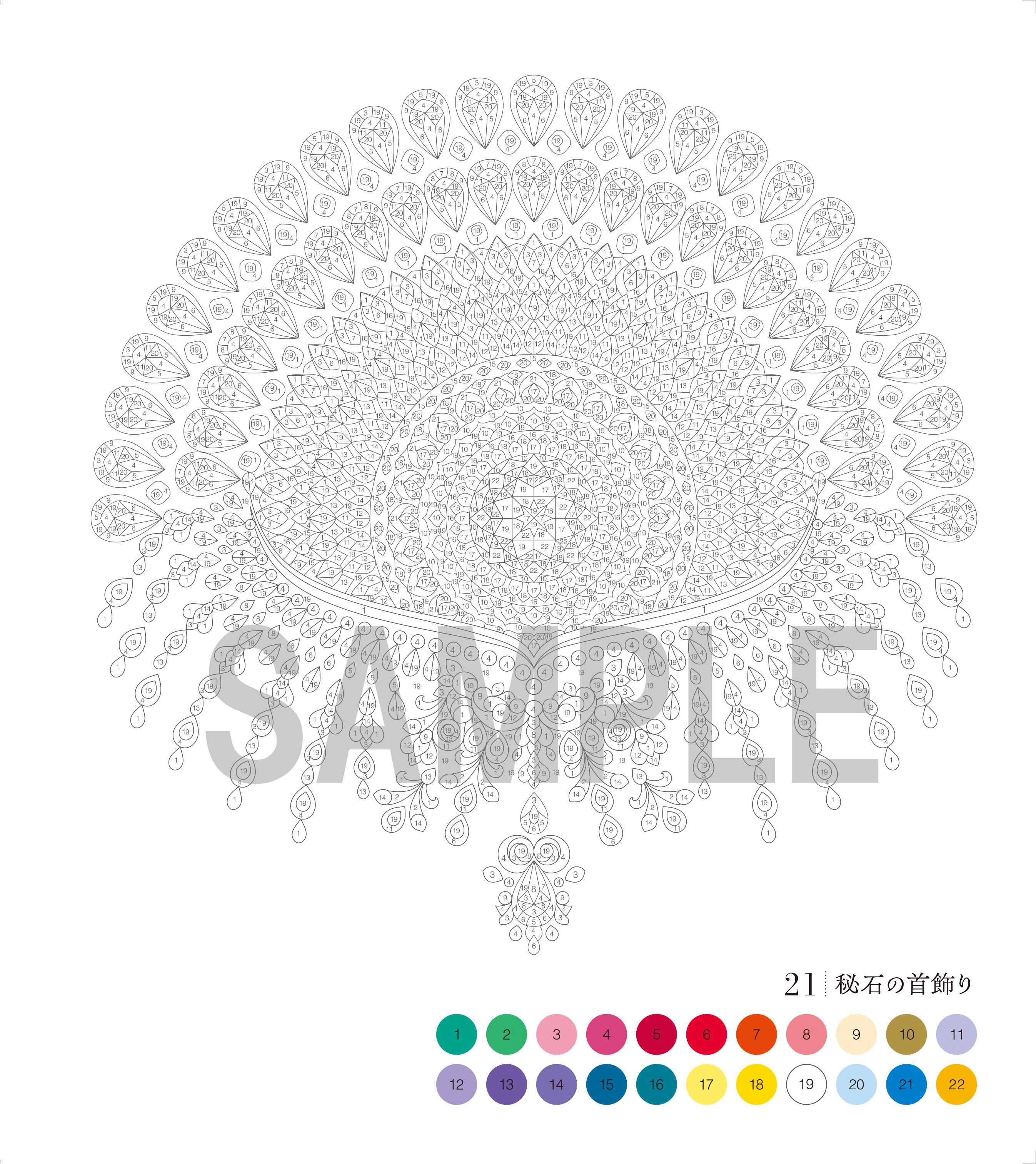 線画に書かれた番号と色玉の番号が一致した色を線画内のピースに塗っていくと、いつの間にか美しい素敵なイラストが浮かび上がる『パズルぬりえ』。