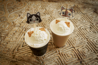 新たに販売するコラボドリンクでは、甘く温かなホットココアとホットキャラメルラテに猫耳を模したクッキーが合わさった、「アイルーのホットキャラメルラテ」と「メラルーのホットココア」、さらに討伐で疲れた身体を癒す「回復薬グレート」が登場いたします!全3種の追加ドリンクで、ハンターたちの疲れを吹き飛ばします!「モンスターハンター・ザ・フィールド inニジゲンノモリ」を全力で楽しんだ後は、冬限定のコラボドリンクで身も心も復活させましょう!