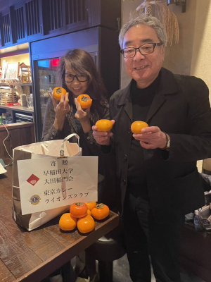 きっかけは、渋柿が大量に実る農家さんから「渋柿は、放っておくと熊が食べに来てしまうので、毎年、廃棄処分しており、その作業も大変な労働だ」と聞きつけたことから東京カレーライオンズクラブの渋柿問題解決計画の取り組みが始まりました。方法は、焼酎差しという手法で渋柿の渋抜きに挑戦し、見事に成功させ渋柿を高級メロンをしのぐ甘さに変身させることができました。それらをNPO法人「歌のチカラ」子ども食堂(https://www.instagram.com/utachika.npo/)様と児童養護施設「清風園」(https://www.seifuuen.or.jp/jidouyougo-index)様へ贈呈し、子どもたちに美味しく食べて喜んでいただきました。農家にも子どもたちにも両方に喜んでもらえる活動となりました。