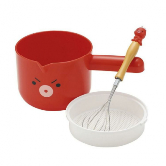生地をまぜて注げる大型の粉つぎセット。混ぜる用のマドラーと粉ふるい付きで1杯で約40個分のたこ焼きがつくれます。