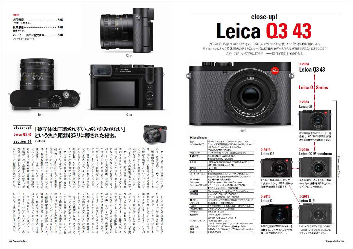 発売されたばかりの話題製品「ライカQ3 43」をフィーチャーし、写真家による撮り下ろしギャラリーに加え、写真家ならではの視点によるインプレッションでカメラの実力に迫ります。