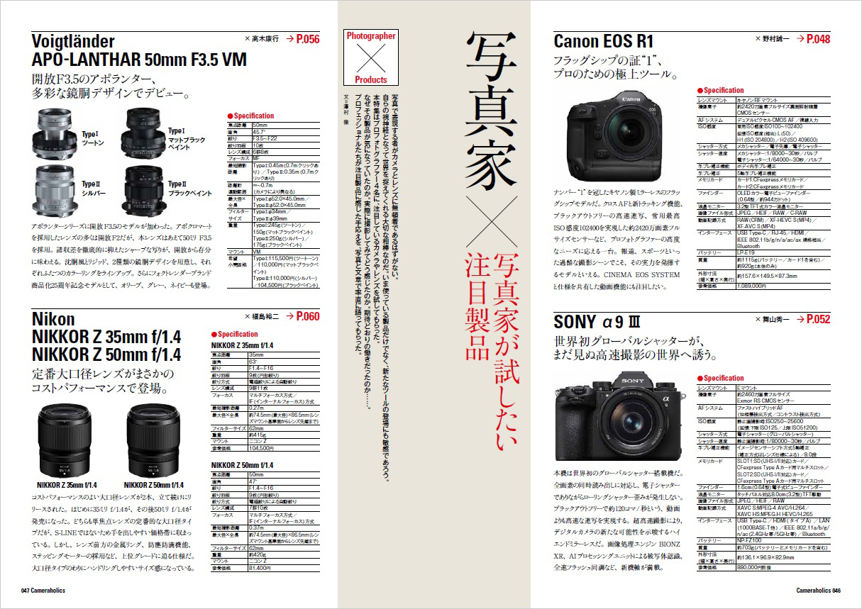 また、プロフェッショナルが自ら試したい製品で作品を撮り下ろす「写真家×写真家が試したい注目製品」、写真を撮ったあとの“写真の見せ方”をとことん語る「アウトプットの匠たち」といった超強力企画を予定。