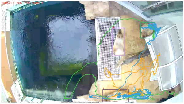 アトアの飼育エリアに設置したカメラの映像から、動物(カピバラ)をリアルタイムに判別・追跡し、行動履歴をデータ化・可視化するAIおよびAIを活用したシステムの開発を行っています。実証実験の現場環境の調査から、AIモデル構築、アプリケーション作成まで、すべての工程にKDLのインターンシップに参加する学生が携わっています。