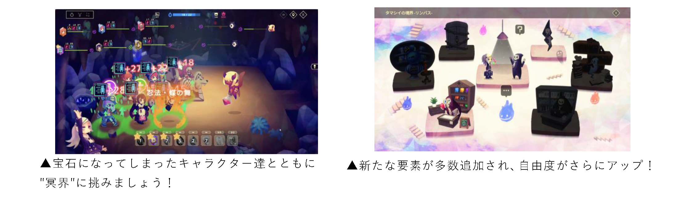 宝石にされてしまった仲間を集め、それぞれの能力を組み合わせて戦う、パーティビルドが鍵を握る「パーティ構築型ローグライク」ゲームです。変化するダンジョンを探索し、手に入れた宝石を使って迷宮に挑みましょう!