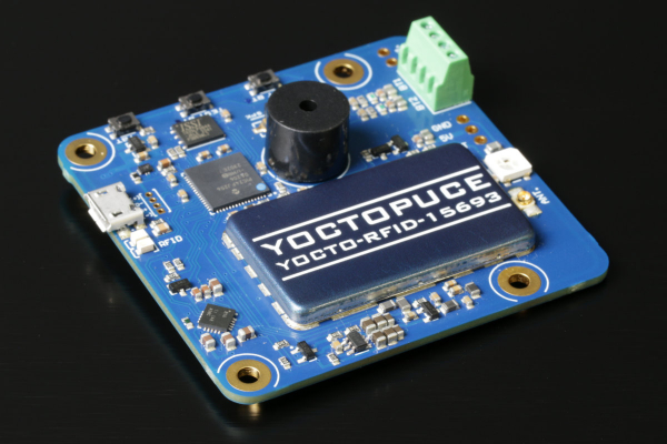 「Yocto-RFID-15693」は、58×60mmの基板として設計されており、Metratec製Dwarf15モジュールをベースにした製品です。このデバイスはISO-15693規格のRFIDタグに対応しており、複数のタグを同時に検知できるだけでなく、検出されたタグのメモリにデータを書き込み、読み取ることが可能です。